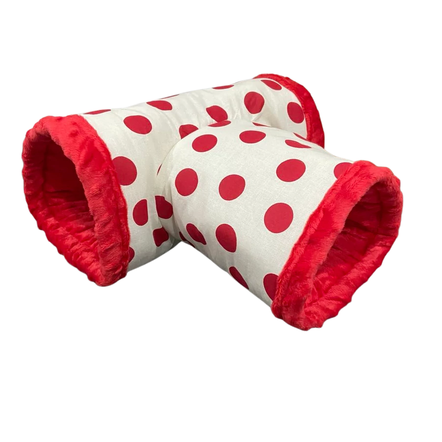Dupla alagút kisállatok számára - piros pöttyös